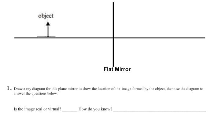 PDF Ray Diagrams for Plane Mirrors - Physics Classroom • Ray diagrams are based on the premise that to view an object in a mirror, one must sight along a line at the image of the object. When one does, light travels along that line to your eye. • Ray diagrams can be drawn for all types of mirrors. This video focuses on plane mirrors. Proceure for Drawing Ray Diagram Step 1 Locate the Image:
