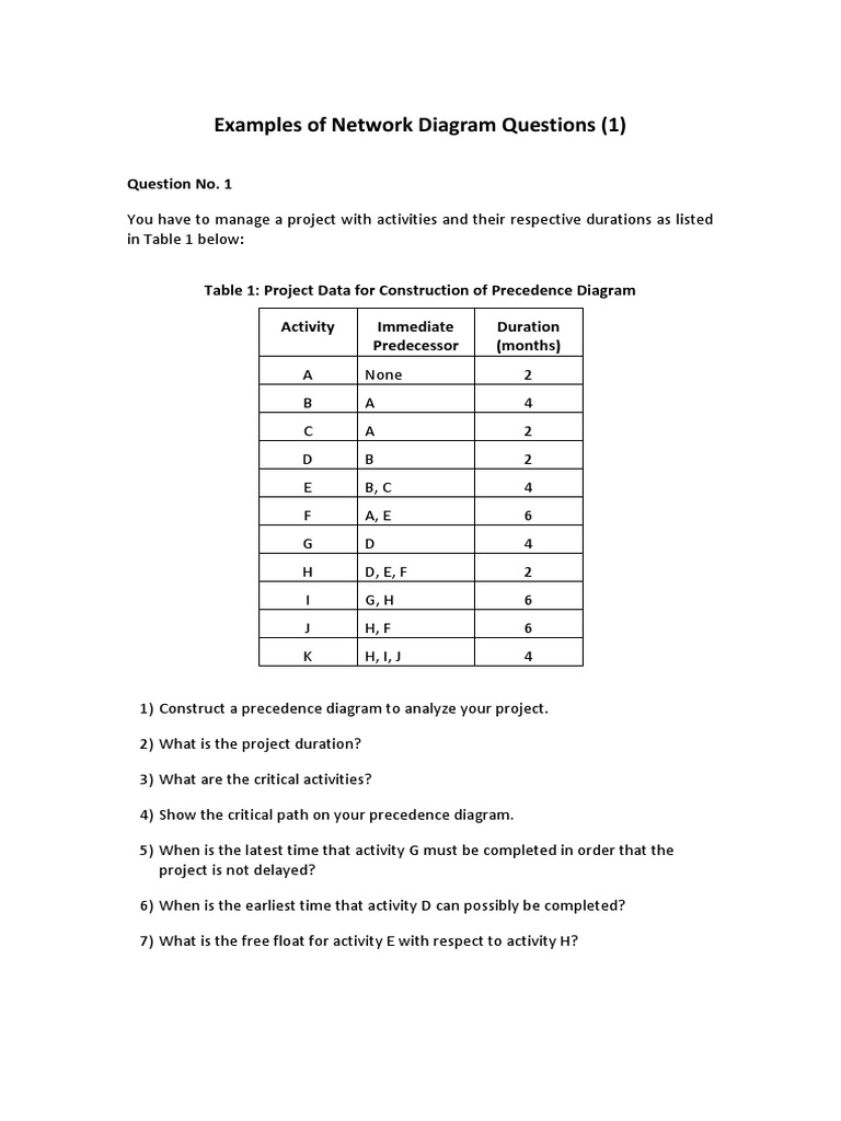 How to Create a Precedence Diagram or a Project Network ... 21.09.2009 · Project activities can be sequenced by using a Project Network diagram (also known as Precedence Diagram) to create project schedules. Before you create a project schedule, you should be able to create and interpret the Precedence Diagram. One critical aspect of the Precedence Diagram (Project Network Diagram) is that it enables you critical path …